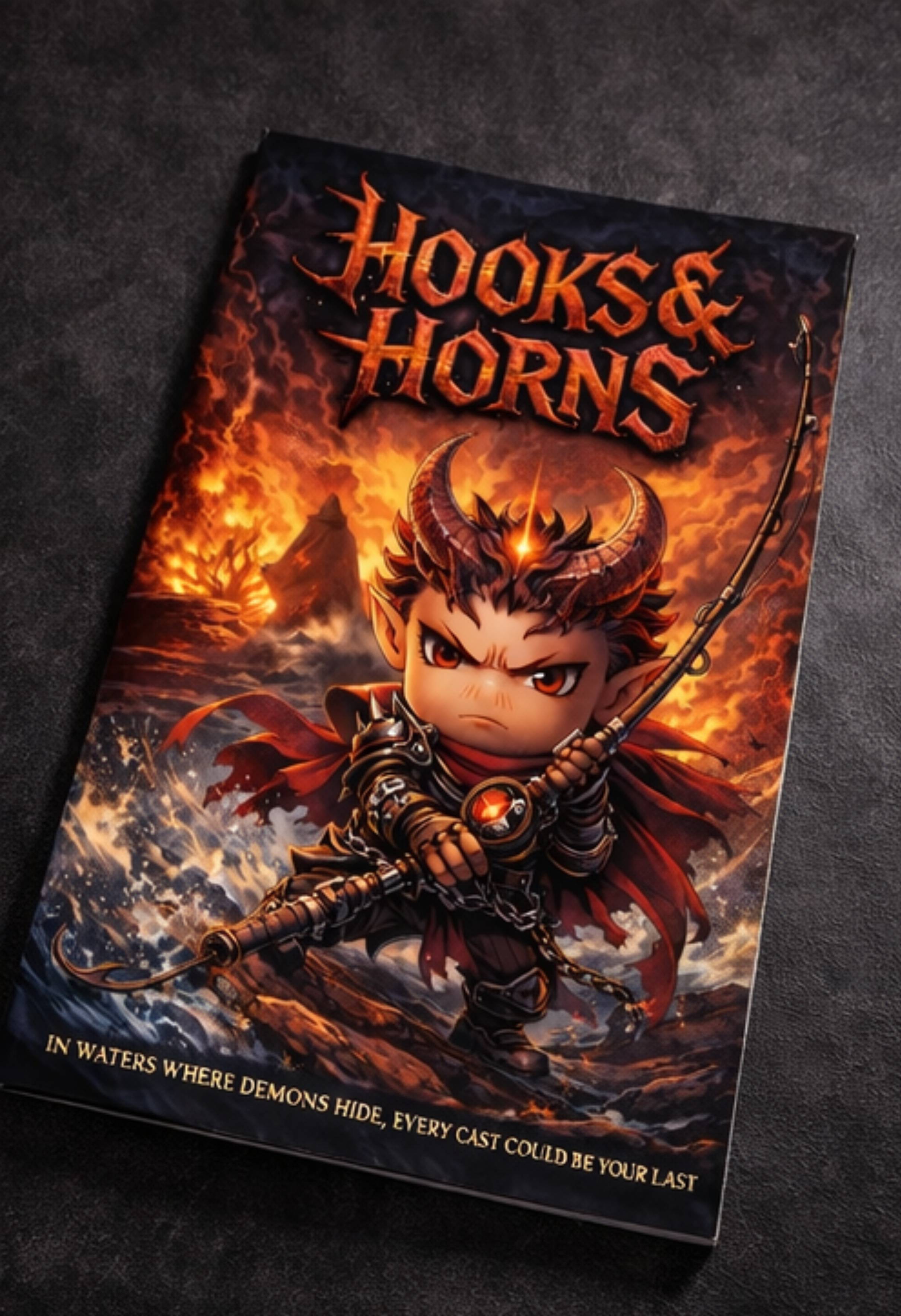 A dark fantasy tale of fire, fury, and the unknown depths — Hooks & Horns blends demonic myth, relentless action, and haunting ocean lore into a world where survival is earned… one cast at a time.